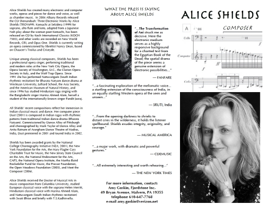 3-fold brochure design for Alice Shields, composer
