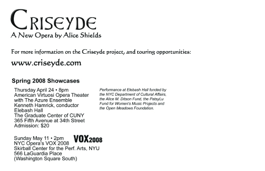 Promotional postcard for the opera "Criseyde"